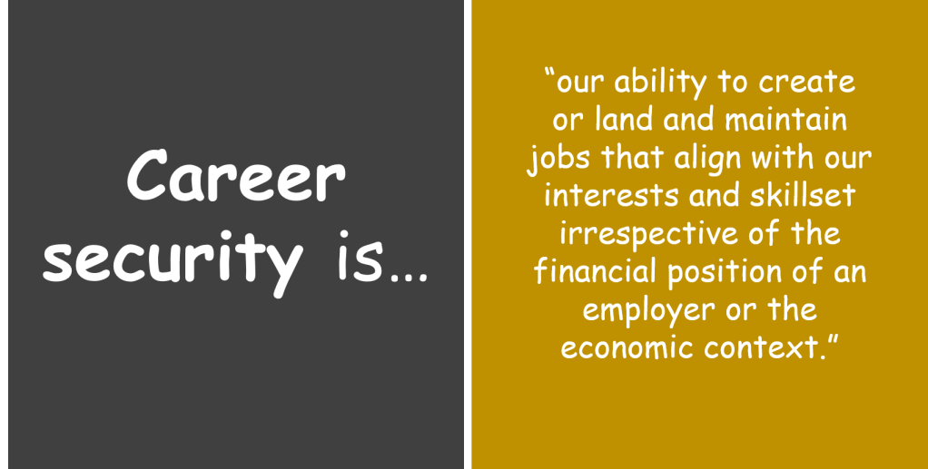 The meditations are intentionally about career security because it is anchored in freedom. Career security is about our ability to create or land and maintain jobs that align with our interests and skillset irrespective of the financial position of an employer or the economic context. In contrast, job security is about not losing a specific/current job or at the very least having it until you decide to leave.
